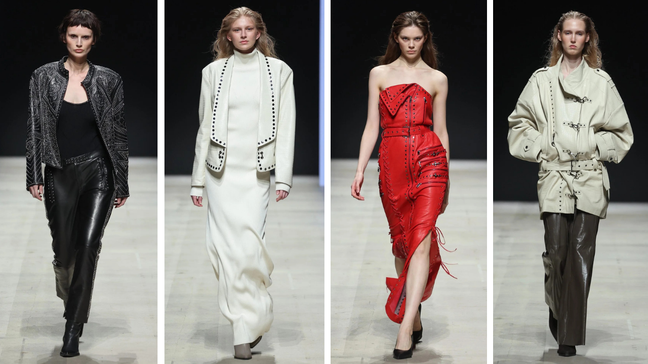 Koleksiyonun tasarım dili; belirgin omuz hatları ve mimari bir titizlikle hazırlanan yapılandırılmış formlarla şekilleniyor. Vücut hatlarını zarifçe çevreleyen deri silüetler ise tasarımlardaki kararlı duruşu, modern bir estetik anlayışıyla podyuma taşıyor.