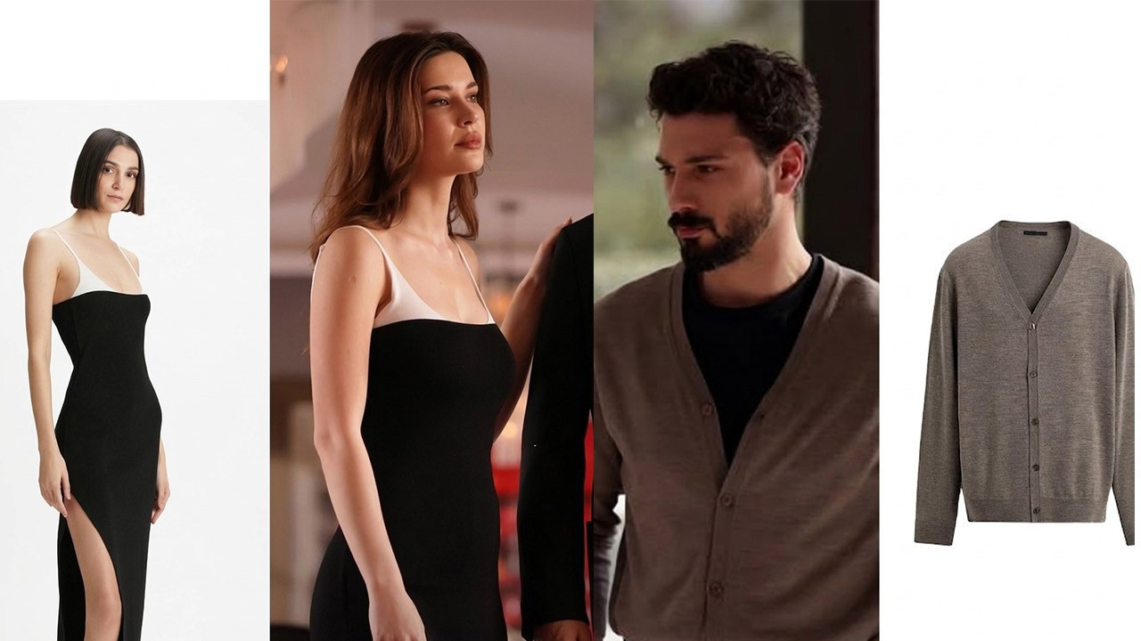 Ceylan’ın giydiği beyaz askılı siyah triko elbise Beymen Academia markasına ait. Fiyatı 11.950₺